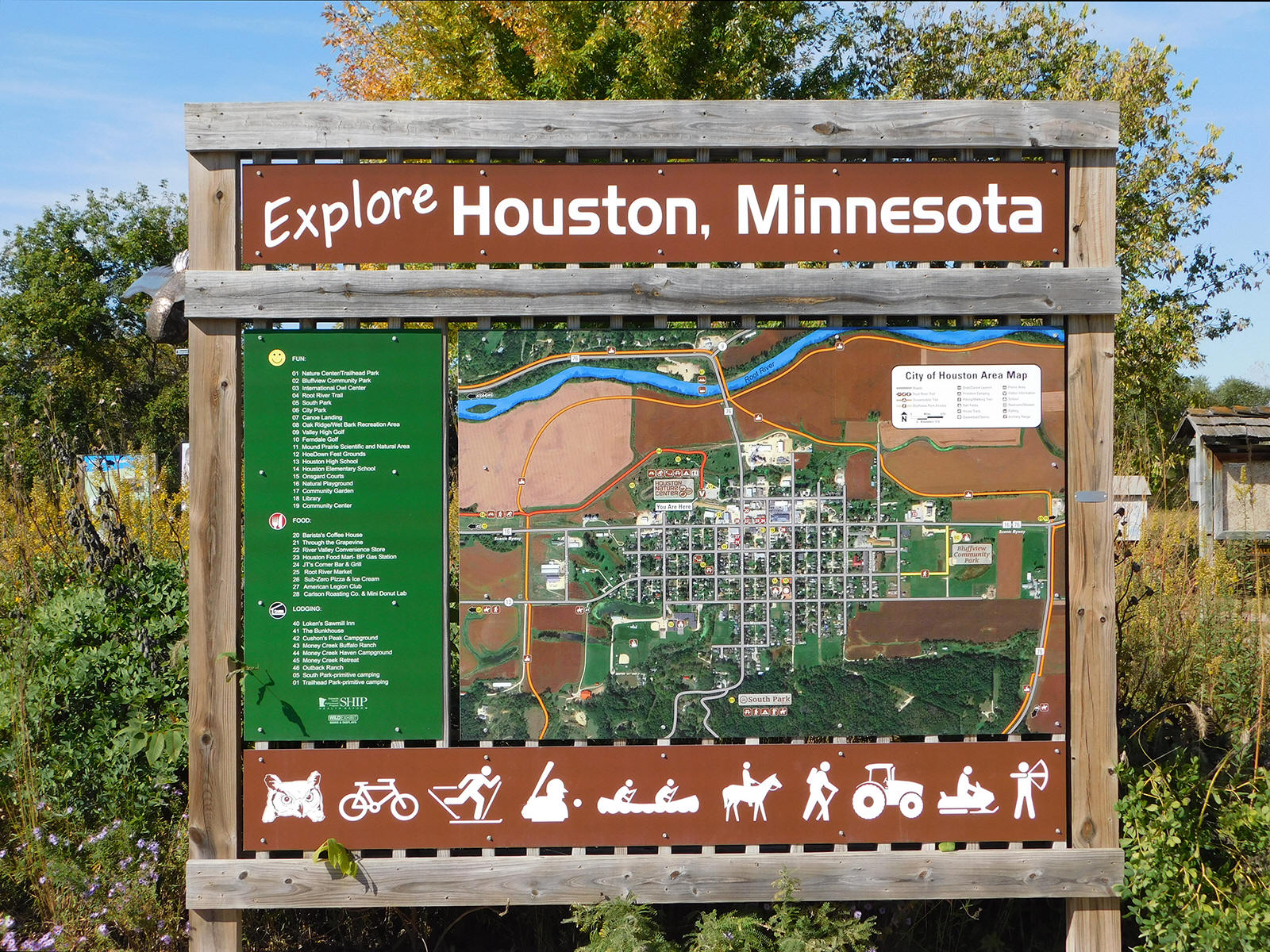 Explore Houston, Minnesota sign. 2024